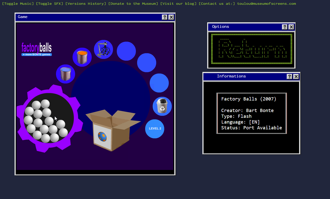 The Museum of Screens started in 2019 as a Twitter account sharing web games from the past. I wanted to explore the world of solo game making, web games from the past, present and future. With the end of Flash, and the changement of the Internet, many games are lost, or at risk at being lost. The stated mission of the museum is to preserve the history of those games, and the people who made them.
